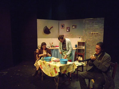Tres actores aragoneses (Gema Cruz, Ana García y Alfonso Pablo) se embarcan en esta comedia negra que trata de reflexionar sobre la necesidad de adaptar o no nuestras vidas para sobrevivir, sin olvidar el humor para librarse de la tragedia cotidiana. El actor y dramaturgo Daniel Martos firma este texto contemporáneo dirigido por Alfonso Pablo. Este trabajo, que se gestó en una residencia artística realizada por la compañía Animalicos en el Teatro de la Estación, es también una coproducción con la compañía Tranvía Teatro.
