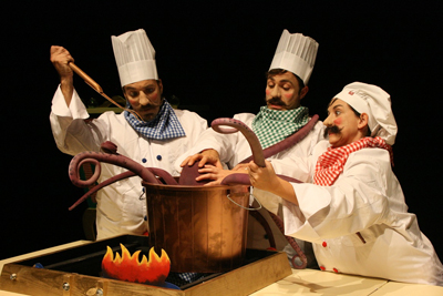 Teatro dos Ghazafelhos estará en el Teatro San Francisco de León los días 12 y 13 de diciembre con su obra ‘Bon Appetit’, basada en el libro de recetas de Álvaro Cunqueiro, «La cocina gallega». Antua de la Sardiní, Philip de Toucignom y Fransuá de la Berenxem son los tres chefs que mostrarán los secretos de la cocina tradicional.