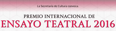 El Instituto Nacional de Bellas Artes, el Centro Nacional de Investigación, Documentación e Información Teatral Rodolfo Usigli y la Coordinación Nacional de Teatro, en colaboración con ARTEZ (Revista de las Artes Escénicas de España) y Paso de Gato (Revista Mexicana de Teatro) convocan el Premio Internacional de Ensayo Teatral 2016.