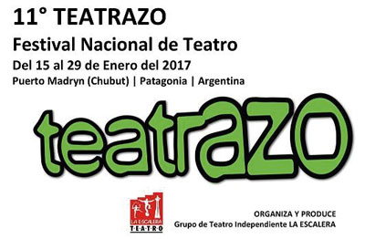 Del 20 al 30 de septiembre estará abierta la convocatoria de la 11ª edición de Teatrazo, Festival Nacional de Teatro que tendrá lugar en Puerto Madryn (Chubut, Patagonia, Argentina) del 15 al 29 de enero de 2017.