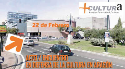 El día 22 de Febrero, a las 8 de la tarde, en el CC. Teatro de las Esquinas del Psiquiátrico, todas las organizaciones, entidades, colectivos, asociaciones y personas que tenemos una mínima preocupación cultural en nuestra comunidad acudiremos a una cita especial. Se trata de explicar bien alto y bien fuerte que las comunidades que no invierten en cultura y educación no tienen ningún futuro en la actual sociedad globalizada y que los recortes que se están produciendo que rondan el 50% para este año, no solo no servirán para salir de la crisis, sino que ahondarán mucho más en ella, al llevar al paro a miles de trabajadores y cientos de empresas culturales en Aragón.