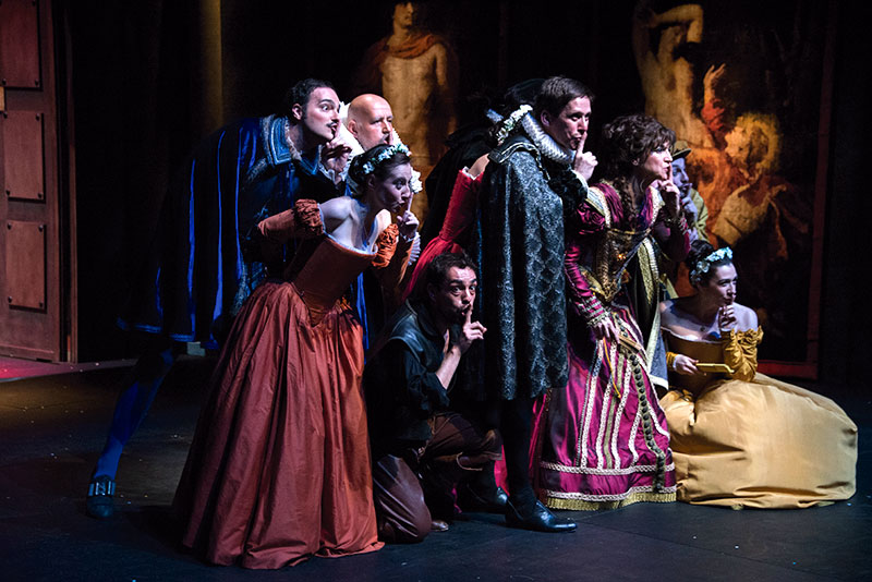 Por otra parte, ‘El perro del hortelano’ es la primera incursión de Dromgoole en la lengua de Cervantes, y aquí dirige a un reparto que componen artistas españoles especializados en el Siglo de Oro y artistas ingleses expertos en Teatro Isabelino. Además, la escenografía del espectáculo replicará un corral de comedias, para evocar el Shakespeare’s Globe Theatre. El juego escénico presenta un espectáculo con varios niveles de lectura, desde el juego de amores hasta la lucha contra lo establecido: ‘El perro del hortelano’, drama de amor, envidia, celos y honor, es una historia de sangre azul, de erotismo y de privilegios, los que ostentaba la aristocracia a comienzos del siglo XVII.