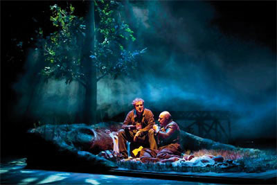 La adaptación y dirección de De ratones y hombres, la trágica historia que el Nobel de Literatura John Steinbeck publicó en 1937, también son cosecha de Miguel del Arco. Debido al gran éxito de esta novela, el escritor estadounidense la convirtió en una obra de teatro. Fernando Cayo y Roberto Álamo dieron vida a George y Lennie en esta producción de Concha Busto junto a Teatro Arriaga, Teatro Calderón, Clece y Kamikaze producciones, metiéndose en la piel de los protagonistas de una tragedia moderna devastadora que se desarrolla bajo el manto de la depresión norteamericana de los años treinta, de la que Steinbeck fue testigo de primera mano. El País publicó: «estupenda escenografía de Eduardo Moreno»; y en Todosalteatro se pudo leer sobre el trabajo del escenógrafo que los actores «están inmersos en una fantástica escenografía de Eduardo Moreno que, junto a la iluminación de Juanjo Llorens, crea transiciones espectaculares en un lenguaje cinematográfico que no sólo agiliza la función, sino que además consigue hacer bellas las escenas en la árida Oklahoma».