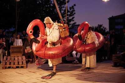 Junto con La Central del Circ se presenta el espectáculo ‘Circant’ de la Cia. Cuncurulla, que llevará sus aires de circo mediterráneo, inspirados en el viento de la Tramuntana. De este modo, el Festival Al Carrer continúa con su firme apuesta por el circo de creación contemporánea. En la misma línea pero con un enfoque más cercano al clown y el teatro, La Industrial Teatrera pone la nota de humor tierno y lúcido con su nuevo espectáculo, ‘Náufragos’. Se trata de un homenaje a los pequeños naufragios de la vida cotidiana, con el sello poético y visual de la compañía. Por su parte, la compañía vasca Deabru Beltzak representará un espectáculo lleno de innovaciones, ‘Su à feu’, una puesta en escena que combina la percusión y la pirotecnia para sorprender al público y hacerlo partícipe de un espectáculo itinerante.