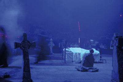 El entorno, más parecido a un plató de cine, se ha inspirado en películas como Nosferatu de Burnau, La momia, El fantasma de la ópera o La niña del exorcista; y la cuidada caracterización de los personajes consigue un impacto visual de gran realismo en el espectador.