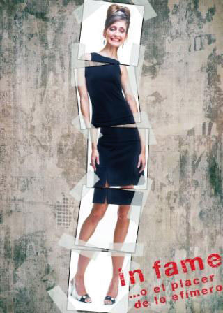 El tema de InFame o el placer de lo efímero, es la descomposición social. En un ambiente sofisticado donde todo es encanto y convención social, se pierden las buenas maneras, y poco a poco se revela la cara oculta de los personajes. Un espectáculo muy cinematográfico, escenas dramáticas coreografiadas donde el espectador sigue lo que la cámara del director quiere. El contexto es actual. La escenografía de un apartamento cosmopolita, moderno y muy funcional. Una caja blanca. Un lugar de descanso poco relajante, una pasarela que no lleva a ninguna parte. Los personajes son artistas. No se conocen. Todos han oído hablar de los otros, pero es la primera vez que coinciden.