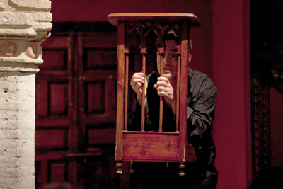 Las representaciones en el Castillo de San Jorge tendrá un carácter muy especial, no solo por el encalve en sí, sino porque están pensadas como un encuentro exquisito e íntimo del público con la brutal historia a la que nos hace enfrentarnos. El espectáculo, que cuenta con la dirección del argentino Juan Carlos Malpeli (director de arte del Lee Stasberg Institut de Los Ángeles, EE.UU.), ofrece una esclarecedora radiografía sobre el mecanismo del poder eclesiástico y la incapacidad del hombre de administrar su propia libertad debido a su débil condición, una invitación a la reflexión potenciada por la cercanía con el actor y la intimi¬dad de este particular enclave. Con un aforo aproximado de 50 personas por función, el espectador asistirá a una puesta en escena única en la que la Inquisición volverá a tomar el Castillo de San Jorge.