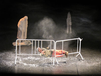 ‘Refugiada poética’ nace del deseo de dar vida en el escenario a sus dos últimos y aclamados solos de calle Barco de arena (Big Prize MiramirO, 2009) y La sonrisa del náufrago (2012) que, junto a De paseo (premio especial de la Feria de Artistas de calle de Humor de Leioa – Umore Azoka, 2004), forman la Trilogía del vagabundo.