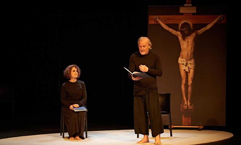 «Este fue el primer proyecto del que me hice cargo con la CNTC – explica Lluís Homar -. Su estreno fue en plena pandemia, en el Corral de comedias de Almagro. También lo llevamos al Temporada Alta, en octubre de 2020. Cuando decidí sacarlo adelante, lo primero que hice fue contactar con Adriana Ozores. Queríamos combinar tres elementos, haciendo presentes en el escenario la poesía, la música y la pintura, con el Cristo crucificado de Velázquez , todo ello para hacer llegar la mística al público a través de los textos de San Juan de la Cruz.»