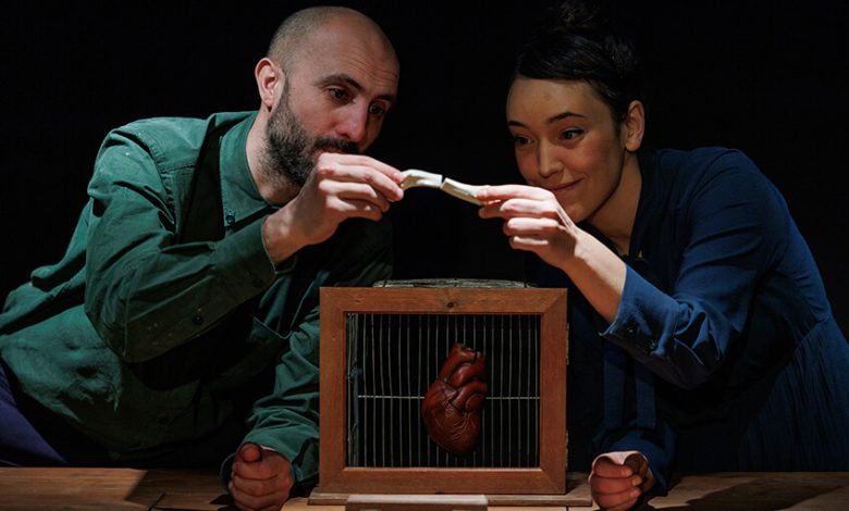 Creada e interpretada por Izaskun Fernández y Julián Sáenz López, la obra contrapone el plano científico, material, empírico, racional, con el plano emocional y de los sentimientos. Con música de Nacho Ugarte, una puesta en escena minimalista y un sofisticado dominio de la plástica, los objetos y el lenguaje visual, ‘Entrañas‘ ha merecido ya varios reconocimientos: Mejor Espectáculo de Sala, en la Mostra d’Igualada (2024), Mejor Idea Original en FETEN Gijón (2024) y Mejor Escenografía en Fira Titelles Lleida (2023), entre ellos.