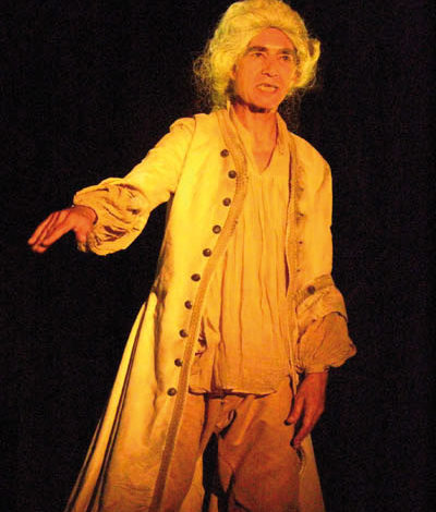 Una escenografía esencial, metáfora de la balsa del naufragio, para un espectáculo que se mueve, a un ritmo como de oleaje, entre el pasado y el presente, la narración y la acción. Sobre ella, un único actor interpreta sucesivamente a los dos personajes centrales del drama.