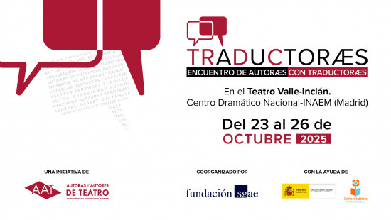 La Asociación de Autoras y Autores de Teatro (AAT) y la Fundación SGAE convocan la décimo tercera edición de los Encuentros de Autores con Traductores que se celebrarán en el marco del 26º SILT (Salón Internacional del Libro Teatral), con sede en el Teatro Valle Inclán de Madrid (Centro Dramático Nacional – Plazuela de Ana Diosdado s/n) del 23 al 26 de octubre de 2025.