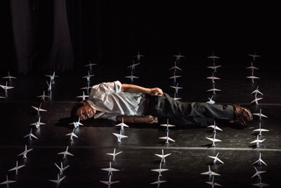 «A mi querido hermano Manolo, con la añoranza de los años y la distancia». Esta dedicatoria en un manual de origami titulado Papirozoo, que Pablo Fidalgo Lareo encuentra en una estantería de su casa, es el inicio de ‘Habrás de ir a la guerra que empieza hoy’. El inicio de un proceso de reconstrucción de la historia de su familia y de España. El inicio del encuentro con la figura fascinante de su tío abuelo Giordano Lareo: encarcelado durante la Guerra Civil, exiliado tras escapar in extremis de la ejecución y, también, profesor, traductor, tesorero de la República en el exilio, representante de Nestlé en la Patagonia, inventor de un sofá-cama y autor del primer manual de papiroflexia de Argentina. En esta pieza, que es al mismo tiempo un encuentro y un baile final, se dará vida a Giordano Lareo. Argentina, la tierra del exilio, será el lugar donde prepararse para la guerra, donde poner a salvo las ideas, donde educar la mirada para un paisaje infinito que nos acompañará hasta el final.