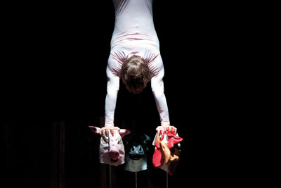 Un personaje que transforma el escenario en un animalarium intentando domar su instinto animal. Un espectáculo que nos muestra la fuerza incontrolable que todos tenemos dentro y que nos conecta con nuestra animalidad más profunda. Cuerpos transgénicos, verticales, acrobacias con talones, cucharas dentro de la nariz, lucha de gallos y bailes rituales.