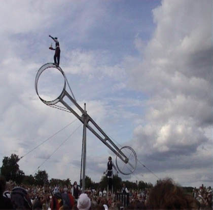 La compañía Studes de Cirque estrena en Euskadi La trilogie du Temps. Un estreno del que podrán ser partícipes todos los espectadores que se acerquen a la plaza del teatro Arriaga el miércoles 24 de agosto. Corriendo sobre una barquilla, que puede alcanzar los 10 m. de altura, el acróbata da impulso al movimiento circular. La dificultad y el riesgo de este número hacen que su disciplina sea muy poco practicada en el mundo.