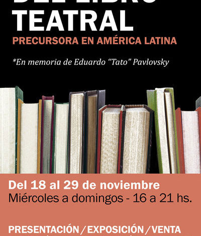 El 18 de noviembre dará comienzo la XIII edición de la Feria del Libro Teatral, en memoria de Eduardo «Tato» Pavlovsky, que organiza Extensión Cultural del Teatro Nacional Cervantes junto con numerosas y prestigiosas instituciones y organismos culturales, editoriales y librerías. Rubens W. Correa, director del TNC, abrirá el acto con unas palabras de introducción a las 17 horas en el hall central del Cervantes, además Pepe Soriano -padrino de la edición 2014- presentará al padrino de la presente edición, Roberto Cossa.