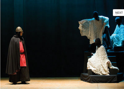 En escena, sólo la escalera, símbolo del estadio superior de la muerte, rompe el vacío. Una cuidada iluminación y una banda sonora continua completan el montaje de la inmortal tragedia de Shakespeare, sin duda, uno de los textos más complicados de llevar a escena de la literatura universal.