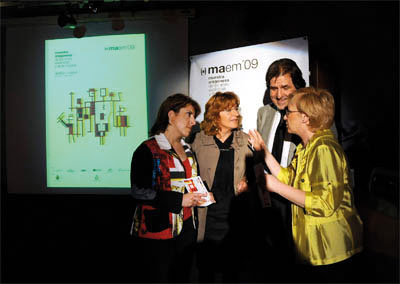 La consejera de Educación, Cultura y Deporte del Gobierno de Aragón, María Victoria Broto, junto al director general de Cultura, Ramón Miranda, y las alcaldesas de Alcañiz y Caspe, Amor Pascual y Teresa Francín, respectivamente, presentaron ayer en Zaragoza los detalles de la Muestra Aragonesa de las Artes Escénicas y de la Música 2009 (MAEM’09).