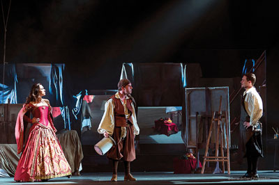 La obra arranca cuando María Calderón, ‘La Calderona’, amante del rey y cómica de las corralas se presenta ante el pintor Diego Velázquez, a quien Felipe IV ha encargado un retrato de su amante. Cuando se encuentran Velázquez y ‘La Calderona’ hay un choque entre ambos y, al mismo tiempo, una atracción que termina por convertirse en enamoramiento.
