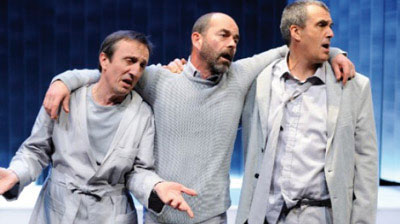 Escrita por Patxo Telleria y dirigida por Jokin Oregi, ‘Pankreas’ es el primer texto teatral contemporáneo escrito enteramente en verso y pone sobre las tablas a tres conocidos actores de la escena vasca, el propio Telleria, Mikel Martinez y Joseba Apaolaza. Esta historia es la de tres amigos de los cuales uno necesita urgentemente un transplante de páncreas, otro tiene previsto suicidarse al cumplir los 60 para esquivar un Alzheimer hereditario y el tercero les junta para plantear que este último, que acaba de cumplir 59, adelante su suicidio y done al primero su páncreas. A partir de este momento los acontecimientos se precipitan obedeciendo a un axioma de la física moderna: todo lo que puede suceder, por extraño que parezca, acaba tarde o temprano sucediendo.