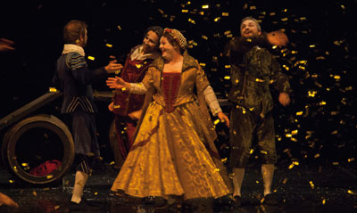 La ausencia de una trama narrativa única – principio impuesto por el sentido mismo del Carnaval – hace desarrollar y mezclar en la energía global del espectáculo las diferentes etapas de este carnaval que se desarrolla en una sola jornada. Por lo tanto, la acción se sitúa sucesivamente por la noche en el banquete de un palacio, en un lugar justo al amanecer, en una calle con la emoción de un baile popular, o durante un teatrillo improvisado; los personajes, fieles al espíritu del teatro barroco y de la Comedia del Arte, existen en situaciones y acciones, más que en función de un propio patrón psicológico.