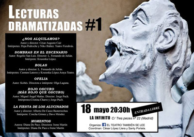 El grupo de facebook ‘El teatro también se lee’ coordinado por César López Llera y Santy Portela ha organizado el programa Lecturas Dramatizadas#1 que tendrá lugar el 18 de mayo en La Infinito de Madrid.