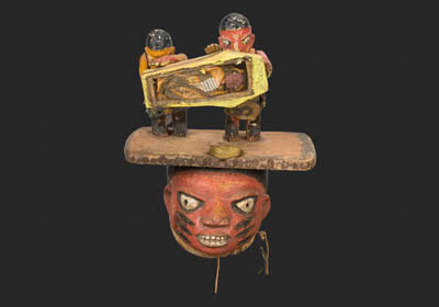 Las piezas constan de una máscara que se coloca sobre la cabeza a modo de casco, y, sobre ella, se representan diferentes escenas con títeres o muñecos articulados que representan escenas satíricas, religiosas, más o menos contemporáneas, de influencia occidental o del día a día. En algunos casos las máscaras tan solo representan la cabeza de un hombre o una mujer, pero, normalmente, se trata de complicadas representaciones de figuras humanas con pañuelos, animales y utensilios encima. El número de máscaras que danzan es, a veces, inmenso, y la variedad de temas tratados es prácticamente ilimitada.