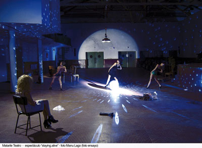 La adaptación es una de las características de ‘Staying Alive’, que al ser creado en un espacio tan particular quedará condicionado en sus futuras representaciones, concebido para realizarse en espacios no convencionales o teatros donde el público pueda compartir la caja escénica con la compañía. Será un espectáculo en constante evolución, propiciando el carácter de acontecimiento en cada representación.