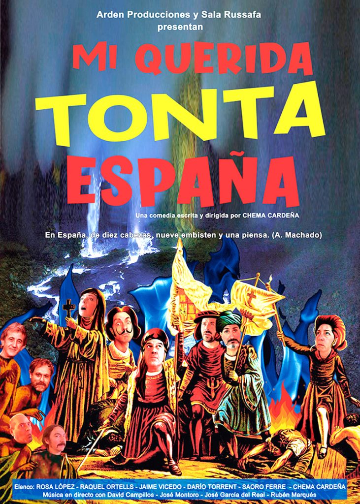 Navidad es sinónimo de comedia en Sala Russafa de Valencia. Esta semana arranca la programación especial por estas fiestas con el estreno absoluto de ‘Mi querida tonta España‘, una nueva coproducción del teatro valenciano con la compañía Arden, quien lo fundó como centro de creación y exhibición escénica hace doce años. Chema Cardeña escribe y dirige este nuevo espectáculo que interpreta junto a los actores Rosa López, Darío Torrent, Jaime Vicedo, Saoro Ferre y Raquel Ortells. La música en directo corre a cargo del grupo valenciano independiente The Grannies Band, con la colaboración del guitarra Rubén Marqués.