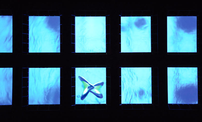 El lucernario del Atrio de Azkuna Zentroa – Alhóndiga Bilbao, centro de Sociedad y Cultura Contemporánea del Ayuntamiento de Bilbao, se convierte en escenario inédito de la primera intervención artística creada para la piscina del centro.