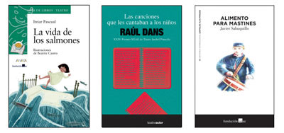 La Fundación SGAE ha publicado los textos ganadores de de los Premios SGAE de Teatro 2015: ‘Las canciones que les cantaban a los niños’ de Raúl Dans, Premio SGAE de Teatro Jardiel Poncela; ‘La vida de los salmones’ de Itziar Pascual, Premio SGAE de Teatro Infantil 2015; y ‘Alimento para mastines’ de Javier Sahuquillo, que conquistó el IX Certamen Internacional Leopoldo Alas Mínguez. Estas tres obras se incluyen en el XX Ciclo SGAE de Lecturas Dramatizadas, que tendrá lugar del 10 al 21 de diciembre, en Arrecife, Las Palmas de Gran Canaria, Madrid, Murcia, Santiago de Compostela, Valladolid, Vitoria-Gasteiz y Zaragoza, y se suman a la amplia colección teatral editada por la Fundación SGAE.