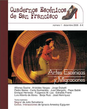 Este primer ejemplar está coordinado por Carlos Gil Zamora, cuenta con artículos de Alfonso Sastre “Emigrar. El teatro como viaje”, Pedro Barea ‘Huellas de la “Comedia dell’Arte” en el teatro español del siglo XX: el sentimiento de una migración cultural’, José Henríquez ‘Migrantes, héroes, hermanos de Aquiles. Angélica Lidell: “Sólo nos queda contabilizar a los muertos”’, Jorge Dubatti ‘Teatro comparado, cartografía teatral’, Fulgencio M. Lax ‘Ombasi, la mirada del otro’, Enrique Herreras ‘Las migraciones teatrales, y las otras’, Luis Alberto Abreu ‘O paradoxo do migrante’, Pepe Bablé ‘Lo mestizo como herramienta de hacer futuro’, Carla Guimarães ‘La inmigración va al teatro’, Juan Margallo ‘De gira por Europa (notas de vuelapluma de las giras por la emigración con el grupo (”Tábano”)’, Borja Ruiz ‘Pequeñas migraciones, grandes influjos’ y Ednaldo Freire ‘Borandá un mergulho na experiência migratória’.