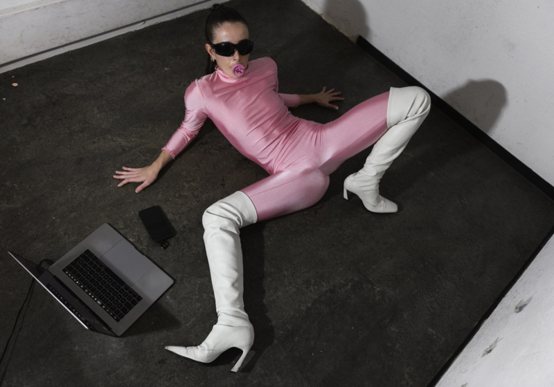 ‘Dispositivo de Saturación Sexual‘ (2020) es una pieza para una sola intérprete que explora la cosificación del cuerpo de la mujer desde su continua exposición en las redes sociales. La reducción del espacio escénico y la escasa movilidad del cuerpo de la performer, se completan con la interacción con el público. De este modo la obra activa el concepto bajo demanda que afecta a las acciones y al rol del cuerpo del intérprete o el del espectador mismo.