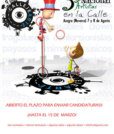 Las fechas para que los artistas de todas las disciplinas artísticas puedan enviar sus candidaturas y participar en este proyecto cultural están abiertas hasta el 15 de marzo. La III Edición de CallejeARTE se celebrará el 7 y 8 de agosto en Azagra (Navarra).