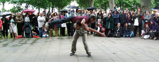 FiraTàrrega ha participado, este fin de semana, en el festival londinense Greenwich & Docklands, en el estreno del montaje ‘Gravity’, un proyecto que ha sido coproducido entre los dos certámenes, fruto de la unión de sinergias entre ambos. Esta coproducción catalano-británica, en la cual intervienen 8 compañías—cuatro de británicas, tres de catalanas y una de balear—, es un paso más en la apuesta por la internacionalización de las artes de calle catalanas, un los cuatro ejes del “Programa de Suport a la Creació 2011” que impulsa FiraTàrrega con el objetivo de potenciar la creación de las artes de calle.