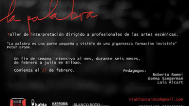 Blanco Roto, compañía fundada por Oskar Garcia y Laia Ricart en 2012, organiza junto al Ayuntamiento de Bilbao 'La Palabra', un proyecto pedagógico para formación de actores impartido por Roberto Romei, Gemma Sangerman y Laia Ricart.