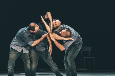 ‘Fractus V’ es una creación con cinco intérpretes: el bailarín francés Dimitri Jourde, que se ha formado en el ámbito del circo; el americano Johnny Lloyd, que proviene del mundo del lindy hop y es músico; el bailarín español Fabián Thomé Dutens, que empezó profesionalmente como bailarín de flamenco con Joaquín Cortés; y Patrick «Two Face» Williams, que se formó en el ambiente del hip-hop y el breakdance. Por su parte, Sidi Larbi Cherkaoui ha enriquecido su lenguaje coreográfico a través del intercambio con diferentes tradiciones de danza durante los últimos quince años. La música en vivo corre a cargo del percusionista y cantante japonés Shogo Yoshii, el cantante y músico coreano Woojae Park y el compositor e intérprete indio de sarod Soumik Datta. Suman así ocho nacionalidades e identidades diferentes que dialogarán para llegar a un todo intenso, dramático y fluido.