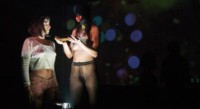 «Teatro Xtremo propone al público una situación de voyeur, en sus performances exhiben momentos privados estimulados por sustancias que les ayudan a conseguir estados y atmósferas delirantes. Aquí, los cuerpos son lienzos donde se pinta y mancha sobre la marcha, bajo el ojo perpetuo de una cámara de video. Una performance en sentido inverso, que reconstruye el viaje desde el caos al orden». / Adolfo Simón – Que revienten los artistas.