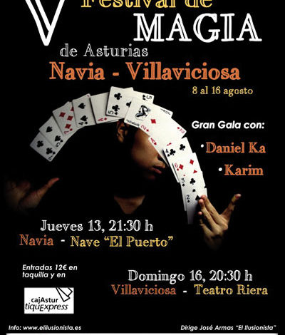 La quinta edición del Festival de Magia de Asturias se celebrará del 8 al 16 de agosto en las localidades de Navia y Villaviciosa. El festival está pensado para todos los públicos, pudiendo las familias al completo disfrutar de todos los espectáculos de magia programados.